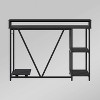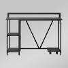 This writing desk features a clean-lined silhouette with a two-tier side open shelf plus an elevated hutch-like shelf giving your home office a modern industrial look. The engineered wood surfaces showcase a rich black wood grain hue with sturdy steel frame that brings some industrial vibes to your workspace. It includes a powder-coated steel frame adding plenty of support, plus a small side holder hook to hang your headphones , or any other accessories. It also includes a convenient mobile CPU Caddy to elevate your CPU box off the floor.