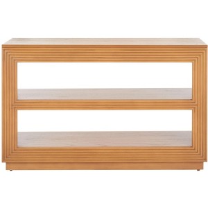 Invite a dose of warmth and elegance to your home with our Ines console table. The streamlined profile of the table stands out with stunning details. Crisp lines are beautifully reeded onto the console to attain a stunning visual and textural effect. The lines beautifully emphasize the clean and sophisticate profile of our consoled table. It is enriched in the natural grains of wood to bring sleek and inviting style to any room. With two large open shelves, our space-friendly console table remains perfect for styling your entryway, living space, or dining area.