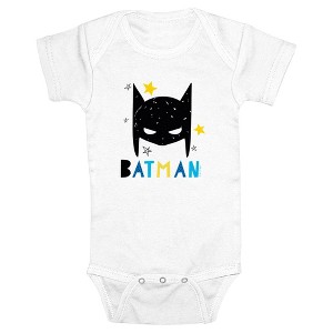 - The smallest family members are also the most stylish with this new Bodysuit that is perfect for crawling around and indoor play! Featuring Batman's mask, his name written in multicolored lettering, and star doodles on the front.