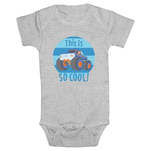 Let your curiosity run wild with Blippi! Join Blippi and his friends as they explore real-life places and learn through play with adorable new officially licensed apparel for your baby from Blippi! This Is So Cool bodysuit features an animated version of Blippi driving an awesome truck and the phrase: "This Is So Cool!" in blue lettering across the front. Get your Blippi gear today and get in all the fun!