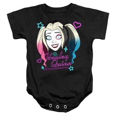 - The smallest family members are also the most stylish with this new Bodysuit that is perfect for crawling around and indoor play! Featuring Harley Quinn in a silly pose alongside her signature bat printed across the front.