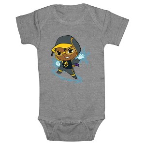 Oh no watch out, villains! You don't stand a chance against one of these officially licensed DC Super Friends bodysuits! Where some of everyone's favorite DC heroes are portrayed across a cute cartoon-like-inspired design! This adorable Chibi Static Infant Bodysuit features a large graphic of the comic book kid Static displaying his electromagnetic powers across the front. Grab one of these amazing graphic bodysuits for your baby and celebrate the iconic superhero!