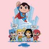 - The smallest family members are also the most stylish with this new Bodysuit that is perfect for crawling around and indoor play! Featuring Superman flying into action as Batgirl, Aquaman, Wonder Woman, and The Flash look up to him from the ground, asking the famous question, "It's a Bird? It's a Plane?"