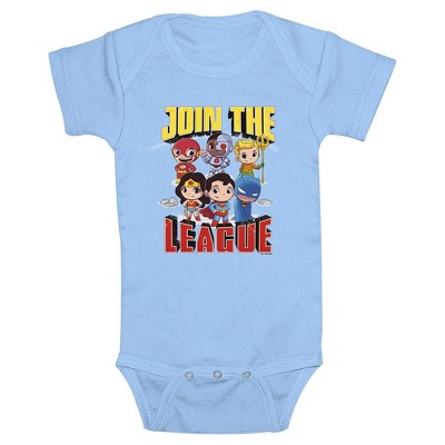 - The smallest family members are also the most stylish with this new Bodysuit that is perfect for crawling around and indoor play! Featuring chibi versions of The Flash, Aquaman, Wonder Woman, Superman, and Batman getting ready to fight, with a skyline peeking out in the background.