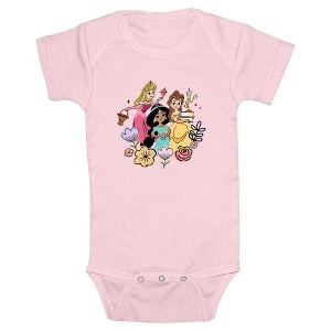 - The smallest family members are also the most stylish with this new Bodysuit that is perfect for crawling around and indoor play! Featuring Aurora, Jasmine, Belle, and colorful flowers in a cute doodle-inspired design across the front.