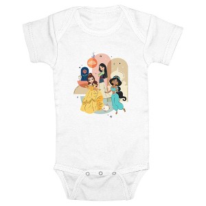 Looking to add a touch of Disney magic to your little ones' wardrobe? Check out this officially licensed Infant Disney Cute Princesses Pose Graphic Bodysuit! This unique design features adorable versions of Belle, Mulan, Mrs. Potts, and Chip with minimalist doodles printed across the front. Whether your kids are super fans or headed to the parks, we've got a wide selection of adorable bodysuits for the whole family to enjoy!