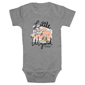 - The smallest family members are also the most stylish with this new Bodysuit that is perfect for crawling around and indoor play! Featuring "Little Wizard" with Buckbeak the hippogriff gliding around Hogwarts School of Witchcraft and Wizardry.