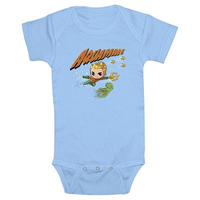 Watch out, villains! You don't stand a chance against one of these officially licensed DC Comics Justice League styles! Where your favorite DC superhero is portrayed in a cute and cartoonish design! This cool Chibi Aquaman bodysuit features the King of Atlantis and the Seven Seas, diving into action with his name printed above! Grab one of these amazing graphic bodysuits and become a member of the Justice League today!