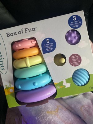 [This review was collected as part of a promotion.] This Infantano Box of Fun is the perfect toy for my baby! She loves playing with the different sizes! It’s such a safe and versatile toy, and is also very durable!