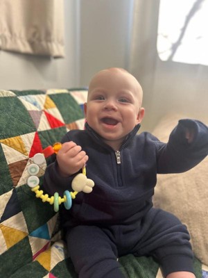 [This review was collected as part of a promotion.] My baby absolutely loves this rattle ! It’s lightweight, colorful, and easy for little hands to hold . The textures and sounds keep my baby entertained, and I love that it’s safe and easy to clean . It’s perfect for playtime at home or on the go . Definitely a must have baby toy !!!