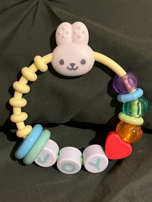 [This review was collected as part of a promotion.] Cute and easily cleaned. Baby likes to move and spin the colorful beads. I like the colors, bunny and that it doesn’t make too much noise. Makes a great baby shower gift.