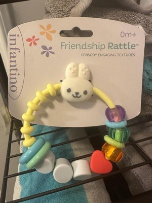[This review was collected as part of a promotion.] The Infantino Friendship Rattle is a delightful and engaging toy perfect for little hands. Its bright colors and soft textures instantly attract a baby's attention, making playtime fun and stimulating. I love how lightweight and easy it is for infants to grip, helping support early motor skill development and hand-eye coordination. The gentle rattle sound is just right — engaging without being too loud or startling for sensitive ears. The various shapes and tactile details also encourage sensory exploration and curiosity. It’s a great toy for tummy time or quiet play, and the durable design holds up well to daily use