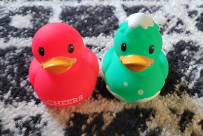 [This review was collected as part of a promotion.] These ducks are super cute! I love the festive red and green. They float well in the bath and my son loves them. I only wish there was a hole in the mouth so they could be squinter toys rather than just a hole on the bottom.