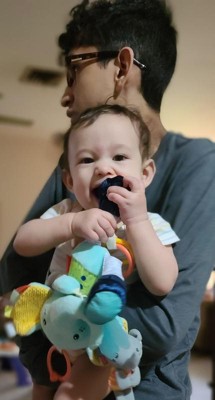 This little guy has so much to offer! Baby loves playing, snuggling, and chewing on him! I just wish it was machine washable.