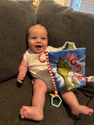 [This review was collected as part of a promotion.] My son absolutely loves his Lil Explorer Soft Book Grinch toy. The crinkle book is so entertaining for him and keeps his attention. I like the squeaker inside the book and the rings also. The tags are part fun for him also.