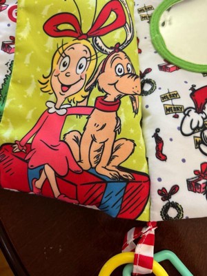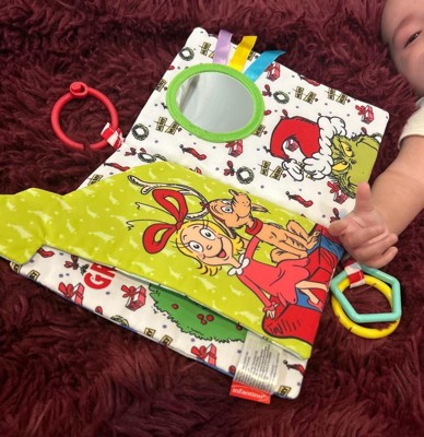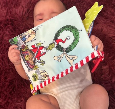 Introduce your little one to the beloved tale of "How the Grinch Stole Christmas!" with this enchanting soft activity book. Perfectly sized for tiny hands, it features engaging elements like crinkle sounds, a soothing teether, and a peek-a-boo tree, designed to stimulate visual, tactile, and auditory development. Delight in the joy as your baby flips through pages to discover characters like the Grinch, Max, and Cindy-Lou Who. With a hidden squeaker and a bright mirror, this book not only entertains but fosters a lifelong love of reading. Ideal for gifting, it makes a wonderful stocking stuffer this holiday season.