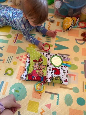 [This review was collected as part of a promotion.] This soft book is great for my baby who just started exploring with her hands. This book is easy for her to hold and pull to her. We love the different features like the crinkly sounds, mirror and ribbons. I also love that I can introduce The Grinch to my baby girl through this Lil’ Explorer Soft Book for her First Christmas.
