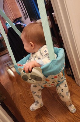 [This review was collected as part of a promotion.] This jumper is very easy to put together and to hang! It is only. A few pieces that you connect. However, the instructions should be more clear regardless. I am never a fan of instructions that ONLY use pictures versus including a simple sentence for direction, too. Regardless, it was easy and pretty straightforward when you actually look at the pieces. The design is cute and I like the colors. The music raccoon part is fun and easy to clip on. You can never go wrong with something that makes noise for a little one! It seems to be very sturdy and well made! You definitely need to make sure you have a space appropriately for hanging it first though because it cannot be screwed in or in any other way attached aside from the claw that it has. It is hard to stratch out over the ledges, which I think is good so that it doesn't fall off while your little on is jumping in if! Overall, very happy with it and the little one appears to be as well.
