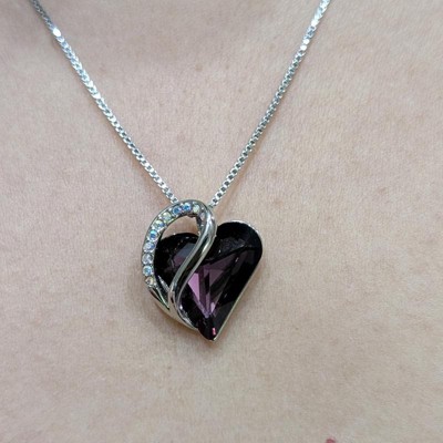 - SPECIFICATIONS - Pendant Size: 0.75" x 0.88" |Chain Length: 18"+ 2" |Plating: 18K White Gold Plated Silver-tone | Clasp: Lobster Claw | Stone: Sweet Heart Fancy Stone, Tanzanite Purple; Flatback Zirconia Rhinestones, Crystal AB Color.