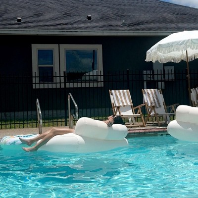 I really love this inflatable chair. I feel like it is perfect for the summer in your pool or even just lounging in your backyard or patio. It is a neutral color and just so cute. I definitely will be using it a ton this summer.
