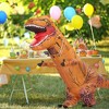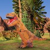 We hope you've been practicing your best stomp and dinosaur moves, as you're about to make the ground shake in our Adult Inflatable Dinosaur Costume. Whether you're a super fan of the iconic dinosaur movie, or simply want to dress up as an extinct creature with a twist, this is the costume for you! The Adult Inflatable Dinosaur Costume is made up of an all-in-one, inflatable dinosaur jumpsuit. The outfit has intricate detailing throughout, including the dinosaur's claws and feet. There's also a mesh square underneath the dinosaur's head so you can see what's going on in the real world. The best part of the costume is without a doubt the huge dinosaur head and his big red tongue that sticks out! The costume inflates using the included battery powered fan. It requires 4 AA batteries (sold separately) and can inflate for 4+ hours. Get ready to wreak havoc on the party! Inflatable T-Rex costumes are a trending dress up idea that's great for groups, also works well solo. There's something hilarious about a giant dinosaur running around and it also makes a big impression.