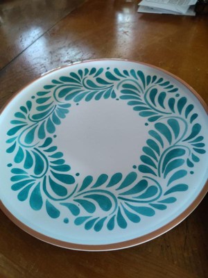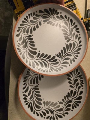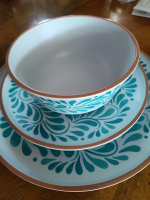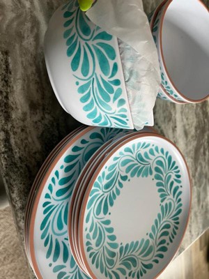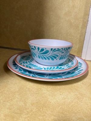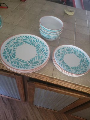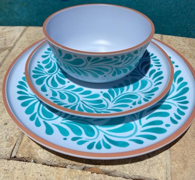[This review was collected as part of a promotion.] Pleasantly surprised at how pretty this dinnerware is. The color and pattern are vibrant and go lovely with my patio cushions and umbrella. The Malamine means they will work perfectly for outdoor dining. they seem very durable which results in less breaking.