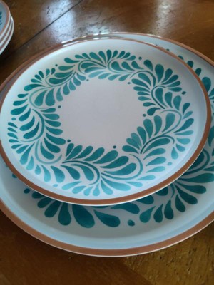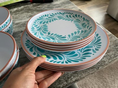 [This review was collected as part of a promotion.] Pleasantly surprised at how pretty this dinnerware is. The color and pattern are vibrant and go lovely with my patio cushions and umbrella. The Malamine means they will work perfectly for outdoor dining. they seem very durable which results in less breaking.