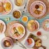 The melamine dinnerware set is a vibrant and durable choice for summer dining, perfect for both casual meals and outdoor gatherings. Guests appreciate the beautiful designs and the lightweight yet sturdy material that mimics ceramic. While the set is dishwasher safe, it is important to note that it is not microwave safe. Overall, this dinnerware offers a stylish and practical solution for entertaining and everyday use.