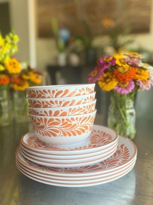 Infuse 12pc Melamine Dinnerware Set Orange