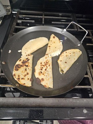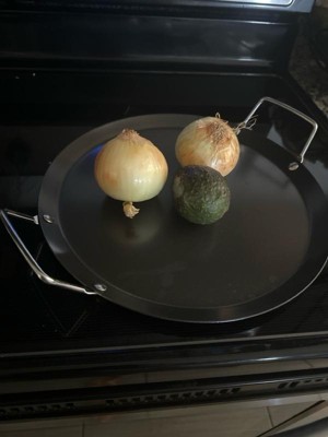 [This review was collected as part of a promotion.] The Round Nonstick Carbon Steel Griddle Pan is a versatile and efficient addition to any kitchen. Its nonstick surface ensures easy food release and effortless cleaning, while the carbon steel construction provides excellent heat distribution and retention. However, it may require seasoning to maintain its nonstick properties over time. Overall, it's a reliable and durable choice especially for tortillas.