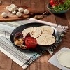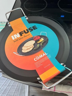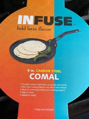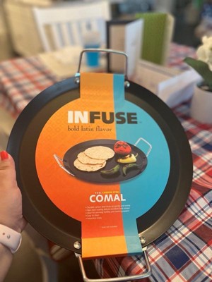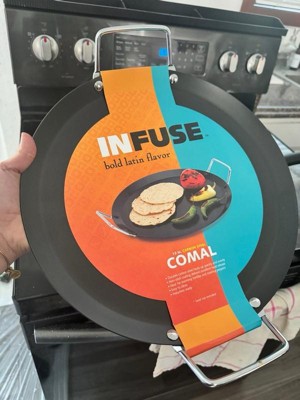 INFUSE brings the intense flavors of Latin cuisine to your kitchen with a cookware collection that celebrates the cultural significance of Latin cooking. Our assortment is designed to honor the rich history of the cuisine and bring out the delightful aromas and delicious flavors that have made the food so popular worldwide. Enjoy delicious homemade meals with extraordinary flavors and perfectly warm tortillas. This thin carbon steel Comal from INFUSE heats up quickly and evenly and features a nonstick coating for excellent food release and cooking convenience.