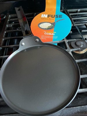 Infuse 13" Round Comal: Carbon Steel Skillet for Tortilla, Gas & Induction Cooktops, Hand Wash, Black