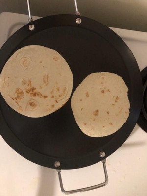 [This review was collected as part of a promotion.] The Round Nonstick Carbon Steel Griddle Pan is a versatile and efficient addition to any kitchen. Its nonstick surface ensures easy food release and effortless cleaning, while the carbon steel construction provides excellent heat distribution and retention. However, it may require seasoning to maintain its nonstick properties over time. Overall, it's a reliable and durable choice especially for tortillas.
