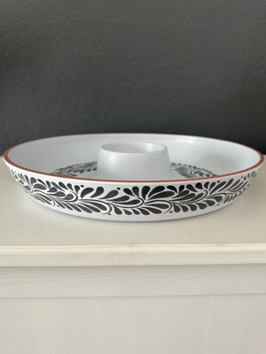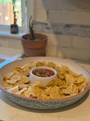 [This review was collected as part of a promotion.] This chip and dip tray is a total vibe, perfect for a fiesta or casual hangout. The standout retro orange floral design adds a playful pop of color, making it just as stylish as it is functional. T he wide outer ring is ideal for piling on tortilla chips (or veggies if you’re feeling virtuous), while the raised center bowl perfectly cradles a generous helping of guac, queso, or faux cheese dip. We used it for guacamole and corn chips, and it not only looked beautiful on the table but also kept everything neat and easy to grab. No spills, no soggy chips, just a balanced, snack-friendly setup.
