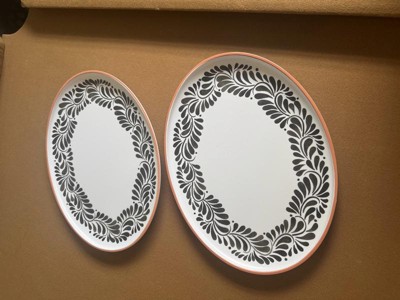 [This review was collected as part of a promotion.] These platters are so beautiful! I really love the pattern. The hand-painted designs would compliment any meal! I had every intention of breaking them out on Mother's Day, but my husband surprised me with a day on the boat instead. They are a very generous size (approx 10"x14") and very durable. They are perfect for main dishes, charcuterie, veggies & dip, desserts, appetizers, a centerpiece, etc. (really, you can use them for anything!) I love that they are melamine, so they are perfect for taking out on the deck/porch as well. You can use them whether the meal is casual or fancy. They would also make a gorgeous gift!
