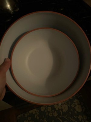 [This review was collected as part of a promotion.] Nice sized bowls. These bowls are great for serving. I use the larger one a lot for salad and pasta. The sauce has not stained them. They are very lightweight. I love the color and design. Very versatile. Easy to clean. Would definitely buy in the future