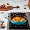 INFUSE brings the intense flavors of Latin cuisine to your kitchen with a cookware collection that celebrates the cultural significance of Latin cooking. Our assortment is designed to honor the rich history of the cuisine and bring out the delightful aromas and delicious flavors that have made the food so popular worldwide. Whether you’re cooking rice, braising meat, or simmering a stew, grab a reliable caldero and enjoy an authentic and deliciously prepared meal. This caldero, from the Spanish 'cauldron', features rounded sides that are built to handle a wide variety of recipes, similar to a sauté pan. This beautiful 3-quart aqua teal caldero is dependable and versatile, made of durable aluminum that heats up quickly and evenly, and finished with a premium non-stick coating for excellent food release and easy cleanup.