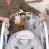 Entertain baby while also adding flair to your chic dcor with the Ingenuity Cozy Spot Swing 'n Go Portable Swing! The removable toy bar - made with wood from a sustainable forest - adds a touch of luxe detail. The toy bar is removable and rotatable for easy placement of baby in and out of the swing. This high-performance swing offers 5 speeds featuring our cutting-edge TrueSpeed weight sensing technology with a timer and a WhisperQuiet motor. The swing is powered by a USB cord (included). Baby's comfort is key, so we've made the adjustable headrest and seat pad with soft boa and other ultra plush materials. The seat pad and headrest are removable for quick and convenient cleaning. The 2 interactive toys star beloved Ingenuity character Nate the bear and a silicone leaf, which provide colorful stimuli for play. Also, the toys are removable for fun on the go. Keep baby engaged with the gift of music since this swing is equipped with 8 melodies and 3 soft nature sounds with a volume control feature for parents' ease. The swing's SlimFold design is foldable for simple storage. The Swing 'n Go is equipped with 5-point safety harness to keep baby secure. This portable swing is for ages 0-9 months or up to 20 pounds, whichever comes first. The assembled dimensions are 26.38 in (H) 31.10 in (W) 23.23 in (L). The Ingenuity Cozy Spot Swing 'n Go Portable Swing makes for an awesome gift for the stylish parent (and baby) in your life!