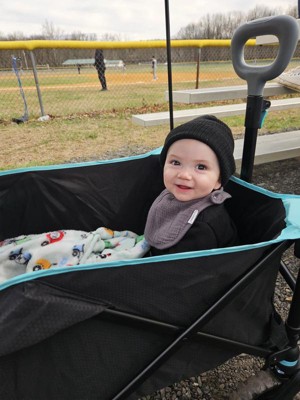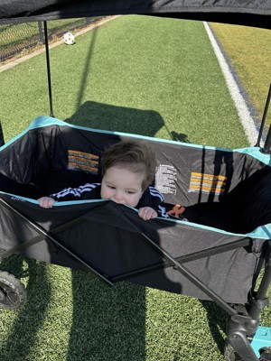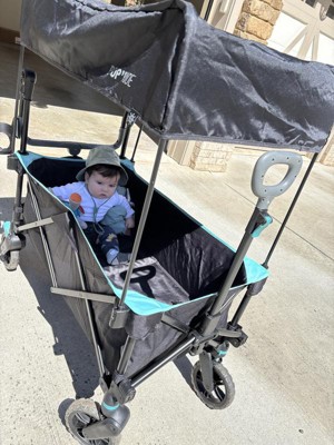 [This review was collected as part of a promotion.] We are a family that is on the go and spends many weekends at the baseball field. So this wagon has come in handy in more than one way. My baby can be easily seatbelt in and I love that it has a canopy over her. I also can add in any of my stuff in the wagon. I love how easy it is able to be folded up and stored in my vehicle. The pockets on the side for easy storage and cupholders and added bonus.