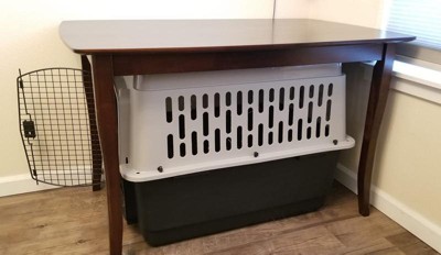 I just set up this table, and I love it! It was just perfect to fit over my dog's kennel so that space isn't wasted. It arrived very quickly. It was well-packaged and everything was secure. There is a strong chemical odor which hopefully will dissipate soon.