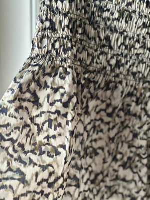 [This review was collected as part of a promotion.] I was so excited about this product but when I received it, I received the wrong color pattern. The texture of the blouse is not comfortable or flattering. It feels like a paper smock you’d wear at the doctors office.