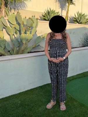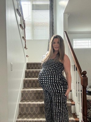 [This review was collected as part of a promotion.] This maternity jumpsuit is fantastic. It’s so soft and stretchy. My pre-pregnancy size (S) fits great at 36 weeks with plenty of space for further growth, and I think this size would have been suitable much earlier in pregnancy as well. It feels like pajamas comfort-wise but can also be dressed up. Normally prints aren’t my style — would love to see this jumpsuit offered in solid neutrals (black, beige, or navy would all look great!).