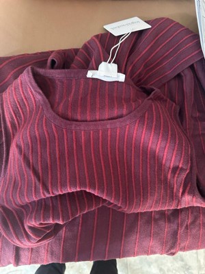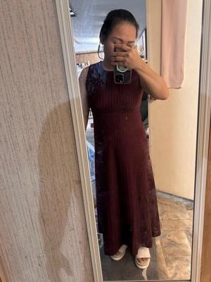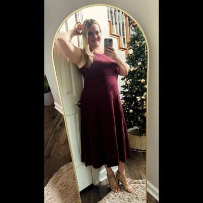 [This review was collected as part of a promotion.] Very beautiful dress. It is very feminine, elegant, and cozy at the same time. The color is called fig/berry, which I would describe as a deep reddish-purple with burgundy, and I really like it. The vertical lines are very flattering and make me look thinner. The dress is quite long (I am 5’3” and have this dress in size S), so it does not ride up too much with a big bump, and it also covers my swollen legs very well. I like the A-line silhouette—it’s not too tight and not too loose, just perfect. This dress has side zippers on both sides for nursing, which is very convenient, and it’s actually hard to find dresses like that. The material is 50% rayon, 30% polyester, and 20% nylon. It is very soft, warm, stretchy, and comfortable to wear. I can wear this dress in different seasons. It’s easy to layer, for example, adding a cardigan in winter, and in summer I can wear it by itself. Even though this is a sweater dress, it is warm without feeling hot. It is also suitable for different occasions, depending on the accessories.
