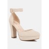 The platform sandals are chic and would make great transition shoes with their interchangeable ankle strap feature. The chain embellished ankle strap instantly takes the sandals from work to play with the subtle bling touch. Upper Material: Microfiber Outer sole: TPR Closed Rounded Toe Platform High Block Heels Back Panel Detail Interchangeable Chain Ankle Strap Lightly Cushioned Sole SH4414