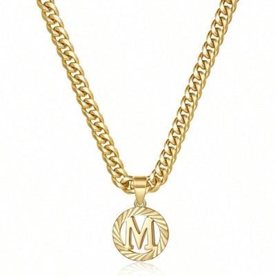 Initial Necklace, Dainty Letter Pendant with Cuban Chain for Women