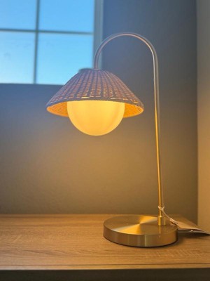 [This review was collected as part of a promotion.] Thus lamp has an easy switch on the cord which I love. No fishing under the shade for the switch! This had a beachy boho vibe for me. The curved post is a cute addition. This was easy to assemble. The bulb is fairly small and isn't super bright. This makes it the perfect bedside lamp to switch on in the morning! I love the look of the rattan shade and it is very sturdy!