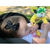 - Graphic black and white clamp for easy hanging on strollers and more