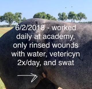 My 2 year old QH gelding tried to jump a fence back in mid April and got stuck over it early one morning. To my surprise there was only minor irritation, which I sprayed off with water and put Vetericyn on right away, but the next morning he was extremely swollen from his flanks to his legs, and on both sides of his flanks had these pretty serious wounds. I called the vet out that morning, figured he’d have to give him a bunch of medicine and it would take a while to heal - I was pretty freaked out! When I told my veterinarian I put Vetericyn on the initial day he jumped the fence, he said “that’s great. Just keep using that until it heals. That’s all you need.” I was sure he would prescribe me a bunch of super medicated ointments and such, but he assured me Vetericyn would do the trick... He scraped off the proud flesh on both sides and told me to do that as well a few times during the duration of healing, gave him a shot of a mild antibiotic, and said to just rinse out the wounds with water after I finish working him each time, and to apply Vetericyn and swat for flies morning and night. I was supposed to be taking this horse to the 2018 Clinton Anderson Academy, and I thought surely there was no way - he wouldn’t be able to heal being worked daily for almost 2 months. My vet said he was more than able to handle the program even with the wounds, that they didn’t cause him any pain, they just looked unpleasant - he gave him a clean bill of health, and said he was good to go. I did what he said, and he already started to heal a little bit before we left for the academy. I was blown away to say the least with the results of using Vetericyn on my his wounds - I’ve used several of their products time and time again for my training horses that have gotten minor cuts, irritation, etc - but I never thought I could use it for something like this. Even with 7 weeks of intense daily training at the academy, the wounds got better and better everyday! By the end of the program, I tested on this horse and successfully graduated the class on him, his wounds were 70-80% healed. Now, there’s nothing more than a faint line on both sides of his flanks were the wounds once were. I think as horse owners and trainers when our horses get hurt, we want to go above and beyond and give them every single thing we can to fix them as fast as possible. But I can say from this experience I know for a fact that using such a high quality product on the market like Vetericyn over several products at once is what allowed my gelding to heal so quickly. Less is definitely more when it comes to these type of things I've found - rinsing with water and applying Vetericyn twice daily is literally all it took. Vetericyn is a product I swear by and use DAILY for all of my training horses, whether it’s just for a small cut, or something more serious - it’s something I never let myself run out of and have made sure it’s a staple for all of the boarders at the barn I train out of to have access to for their horses. It’s more than worth the investment for my horses.