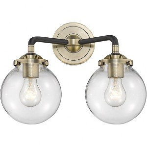 Introducing the Beacon-2 Light Bath Vanity, a stunning addition to your home lighting collection. This wall light features a transitional style, measuring 14 inches wide and 11 inches high, perfect for enhancing any bathroom ambiance. With two bulbs, it provides ample illumination while seamlessly blending farmhouse, industrial, and traditional aesthetics. Crafted to elevate your space, this fixture combines functionality with timeless design, making it an ideal choice for diverse interior settings.,