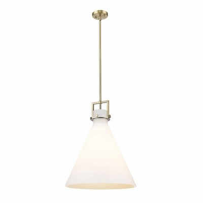 The Newton Bell is a modern industrial collection that incorporates exceptional architectural details and classic bell shaped shade. The delicately curved glass or metal shade complements the clean lines of this restoration inspired line of fixtures. The glass shade is easily removed with the four oversized thumb screws for cleaning / UL/CUL Damp Rated / Rated for 100 watt maximum / Compatible with Incandescent, LED, Fluorescent and Halogen bulbs / Slope ceiling compatible / Includes 30" of stems for hanging the fixture with one 6 inch and two 12 inch sections / Included stems match the finish of the frame. ,